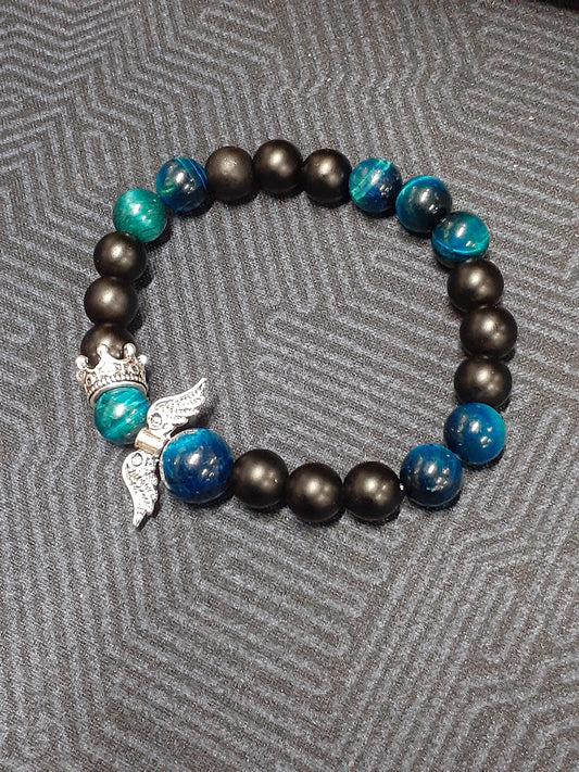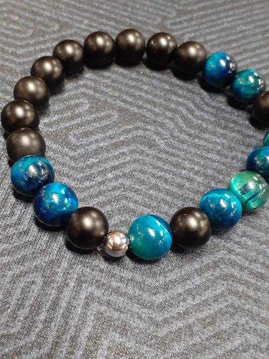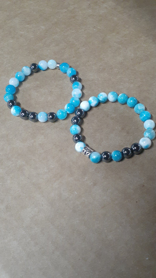 Aries Blue Jade Hematite Stretch Bracelet Set