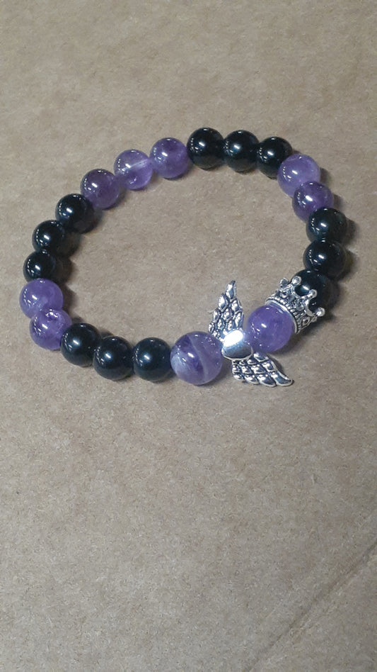 Aries Carnelian Onyx Charm Stretch Bracelet