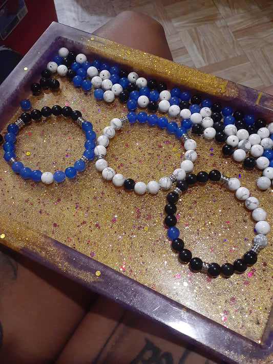 3 Piece Stretch Bracelet Set - Isaiah Blue Black White