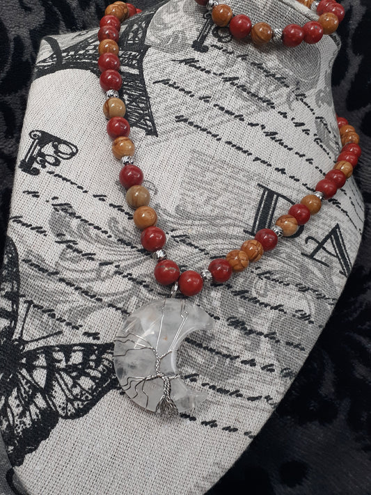 Jasper Quartz Moon Necklace Set 9in
