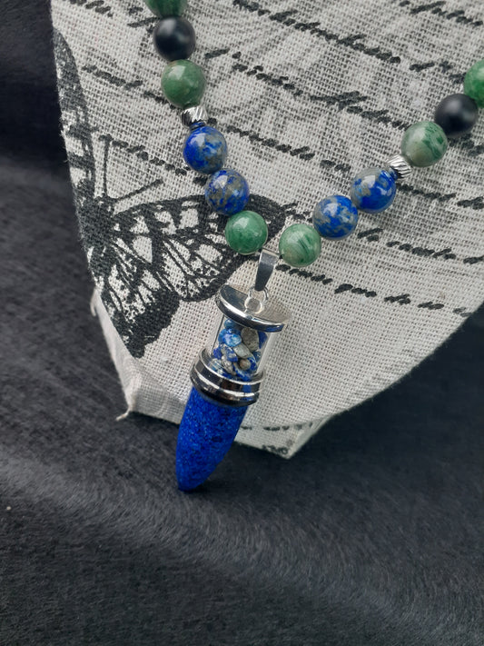 Lapis Lazuli Bullet Emerald Necklace Set 10in