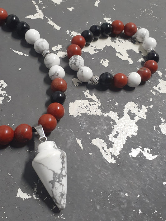 Howlite Arrowhead Necklace Set 10in with KIDS bracelet