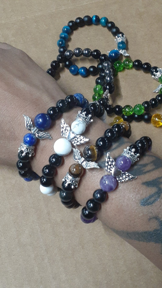 Howlite Guardian Stretch Bracelet Obsidian