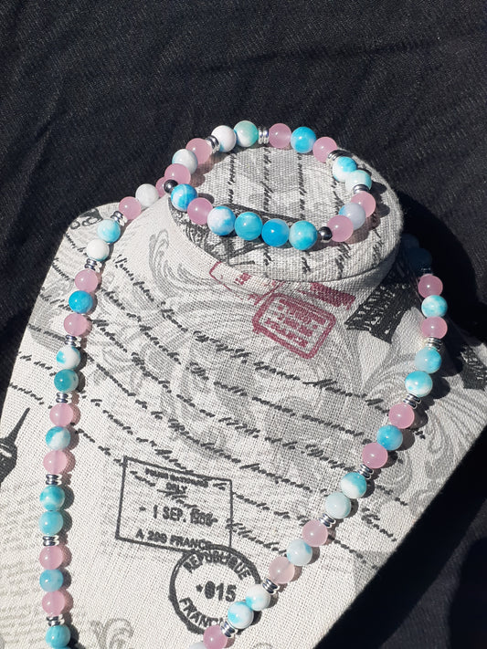 Opalite Heart Rose Jade Necklace Set 10in