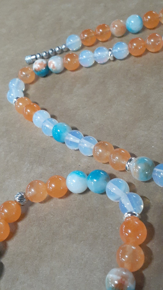 Opal Arrowhead Blueorange Jade Necklace Set 10in with KIDS Bracelet