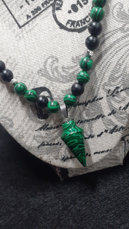Malachite Arrowhead Necklace Set 10in With Kids Bracelet