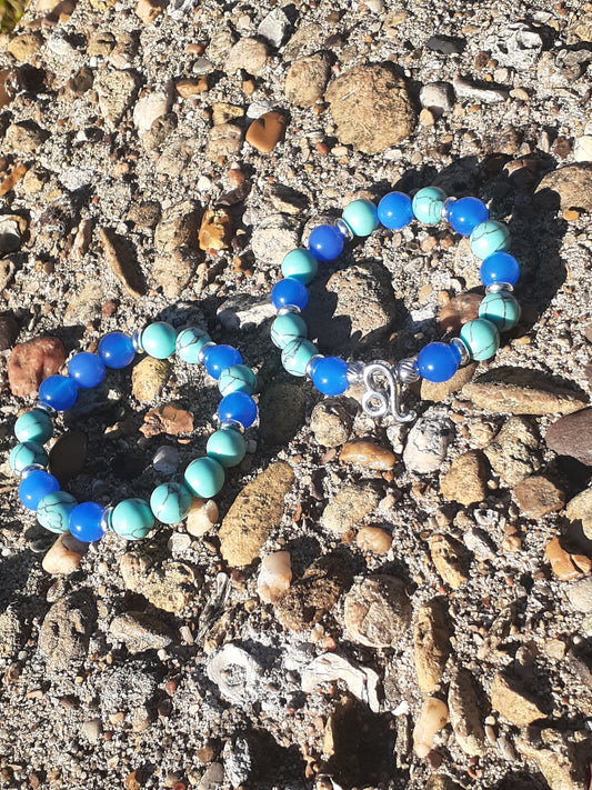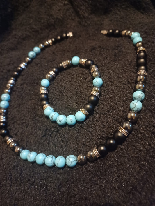 Virgo Blue Jade Hematite Stretch Bracelet Set