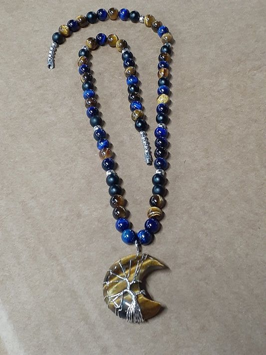 Tiger Eye Moon Necklace Set 12in Sapphire Onyx