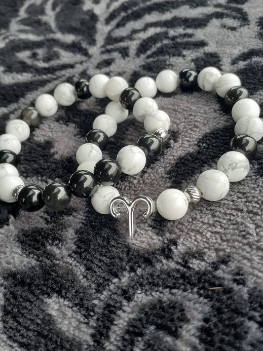 Aries Carnelian Onyx Charm Stretch Bracelet