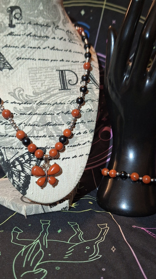 Jasper Butterfly Onyx 2Pc Set With Matching Bracelet