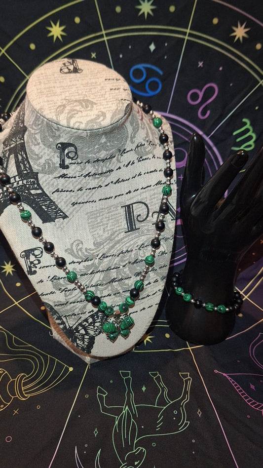 Malachite Butterfly Onyx 2Pc Set With Matching Bracelet