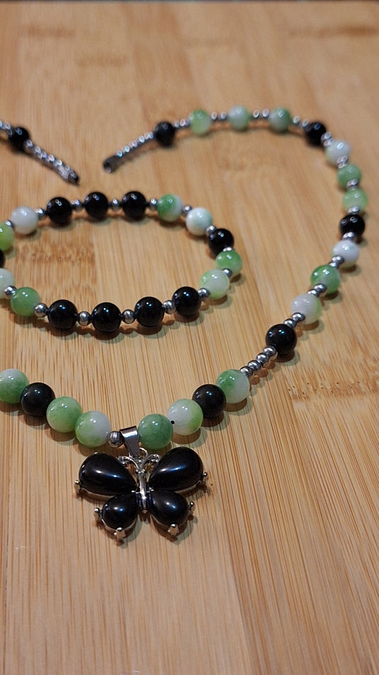 Obsidian Butterfly Jade 2pc Set With Matching Stretch Bracelet