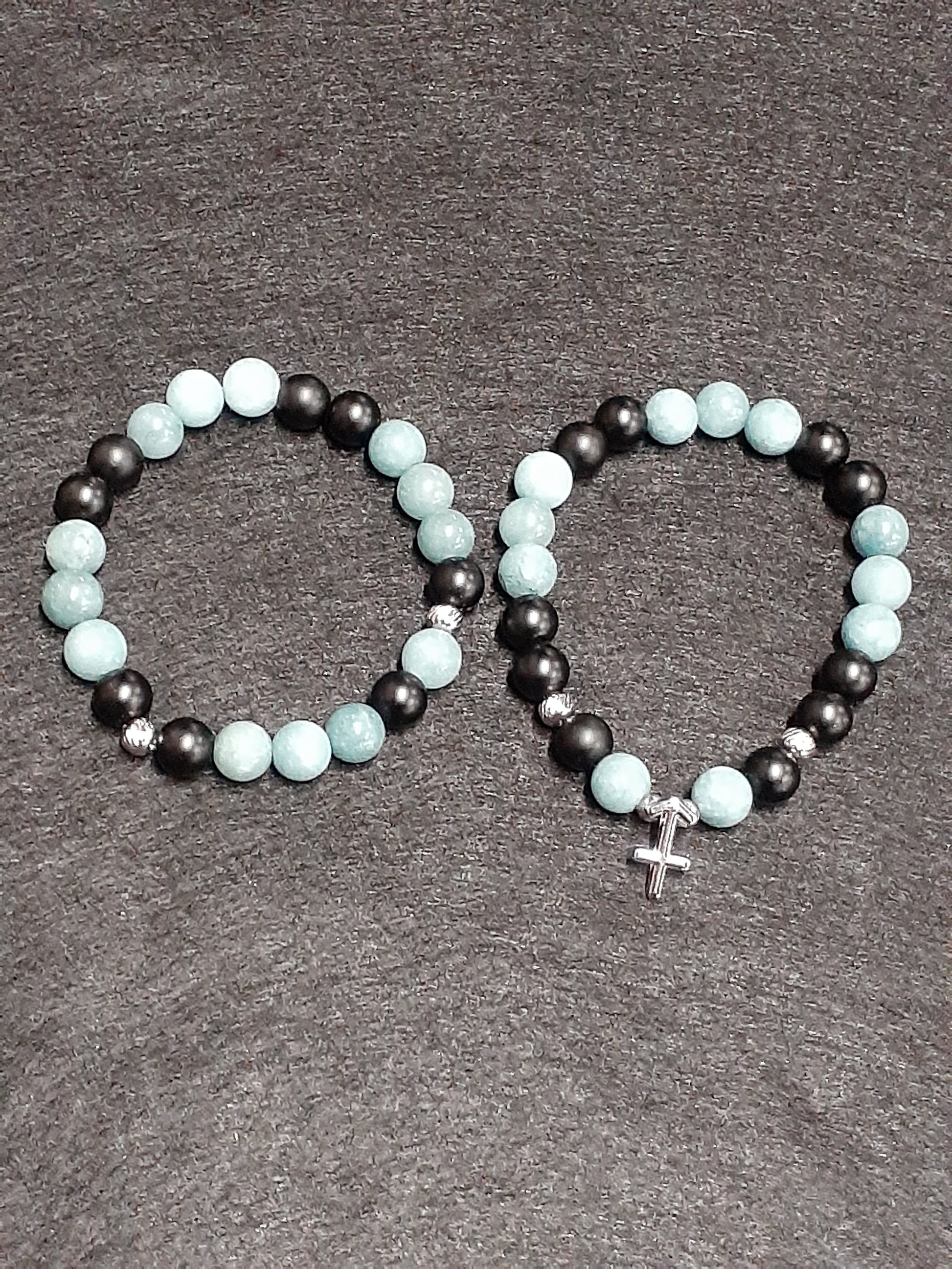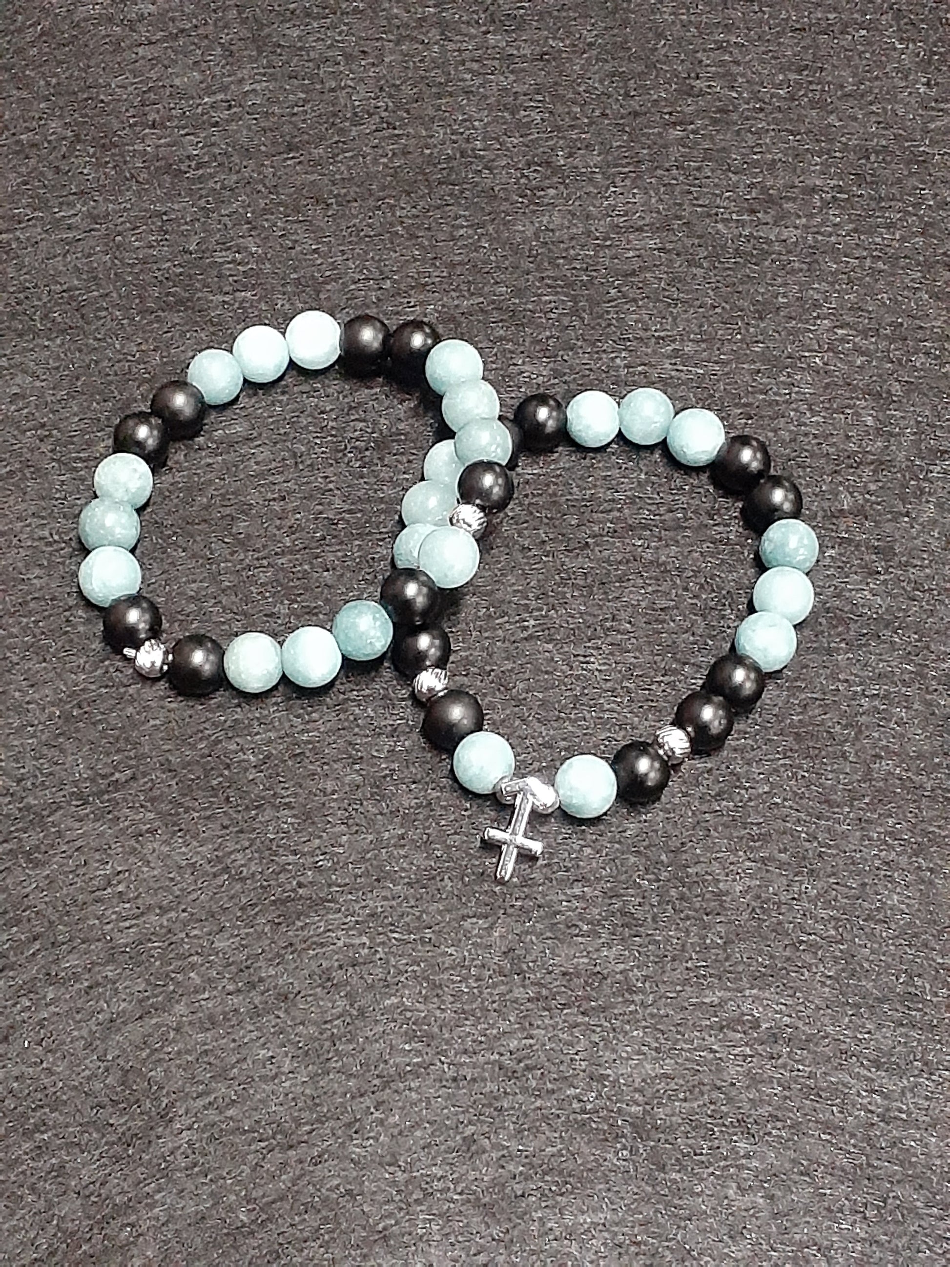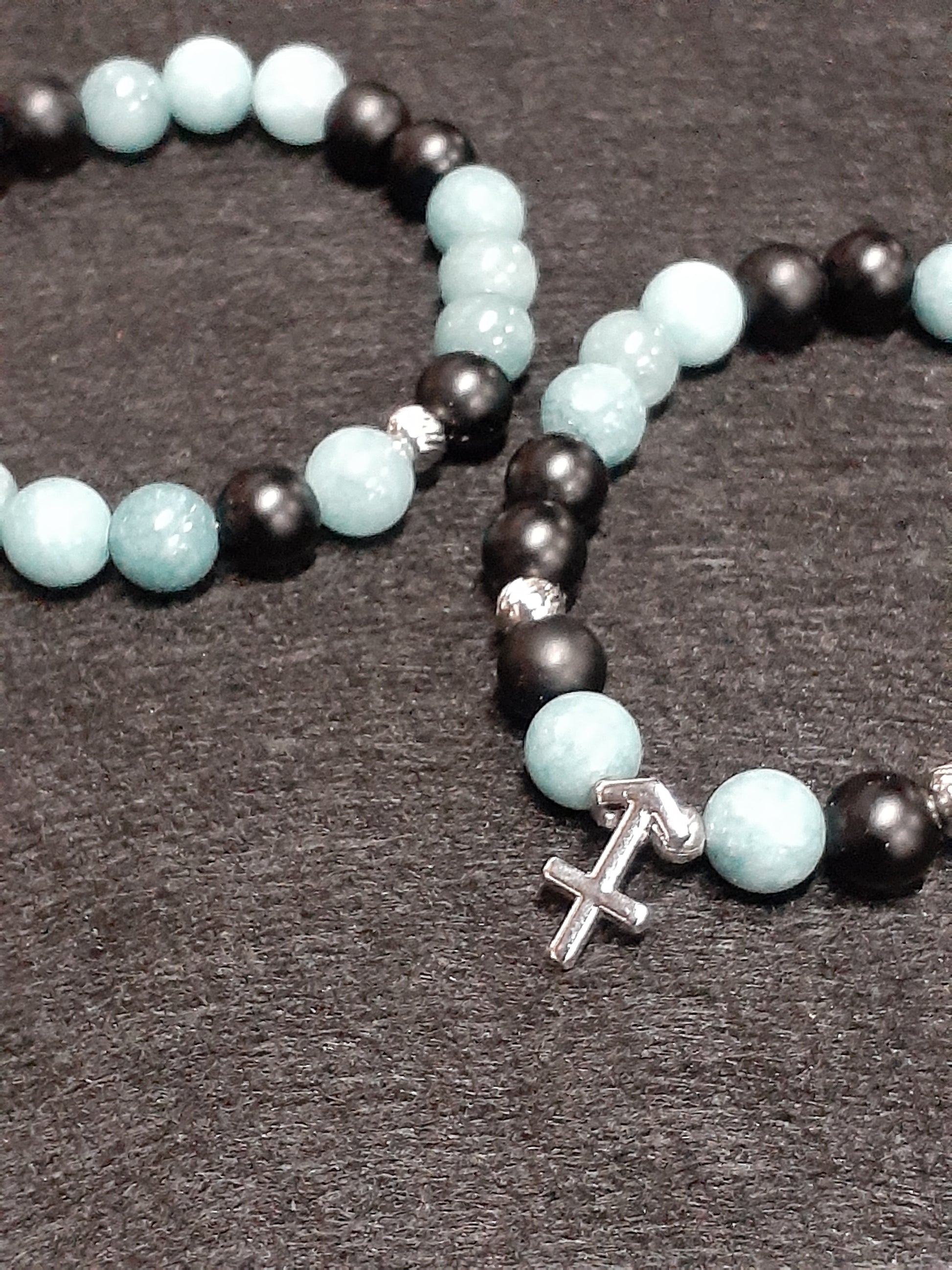 Hand Beaded With Natural Black Onyx and Blue Chalcedony.