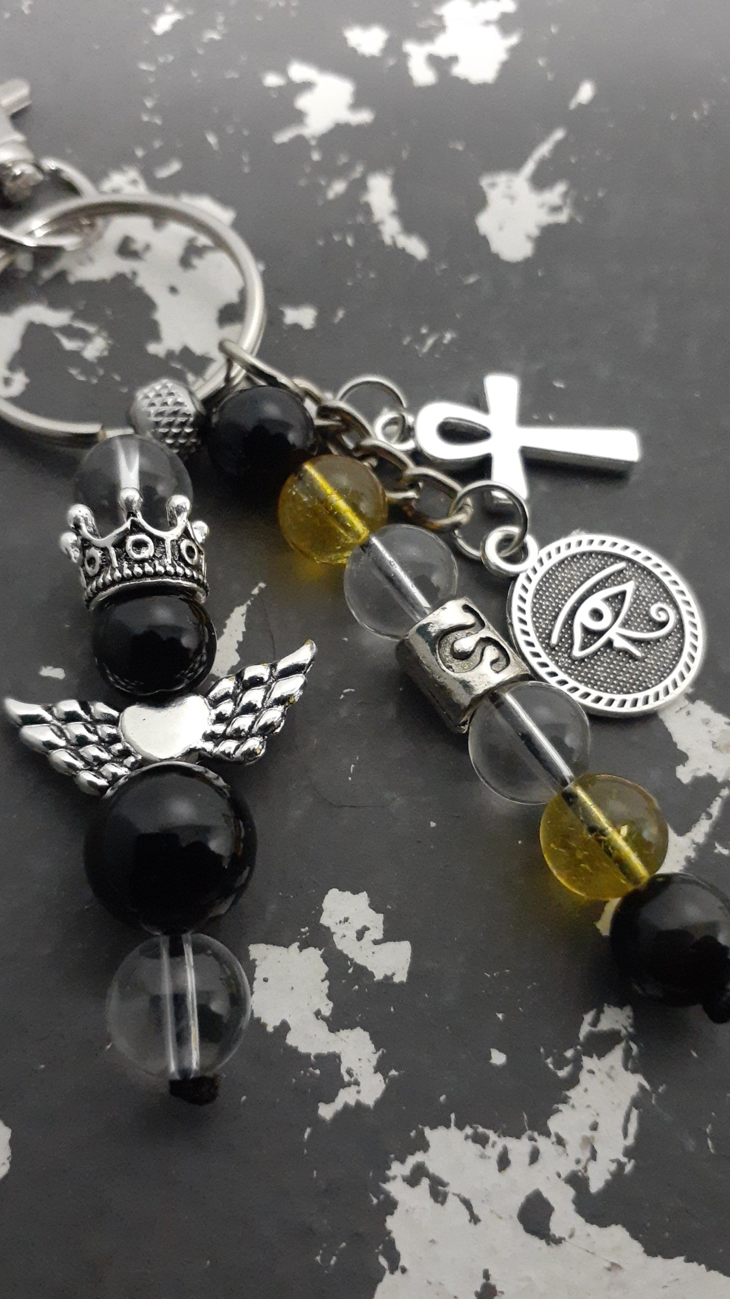 Made With Natural Obsidian, Clear Quartz and Citrine