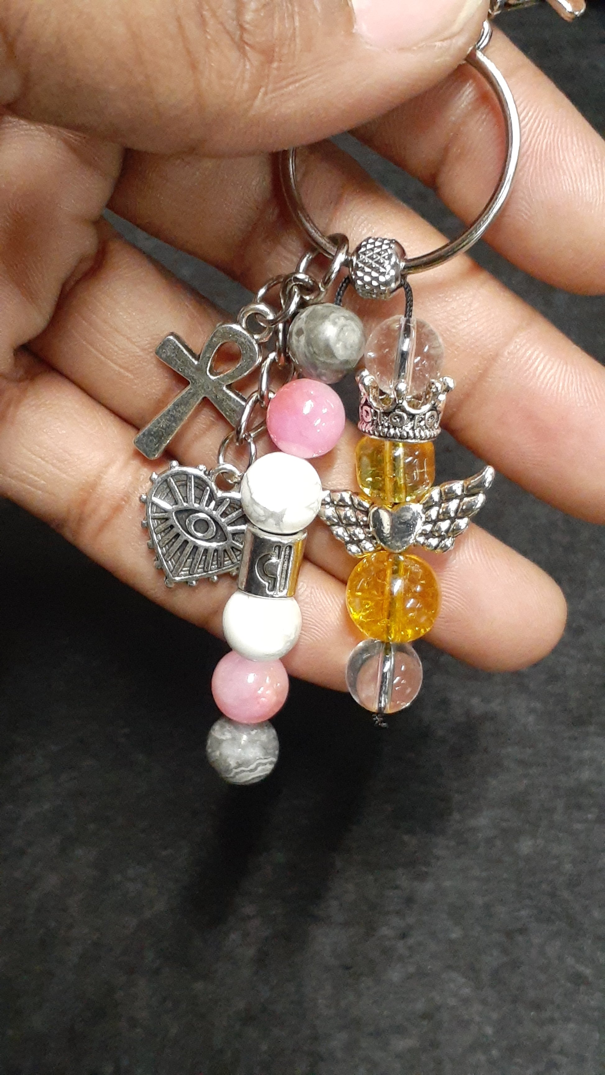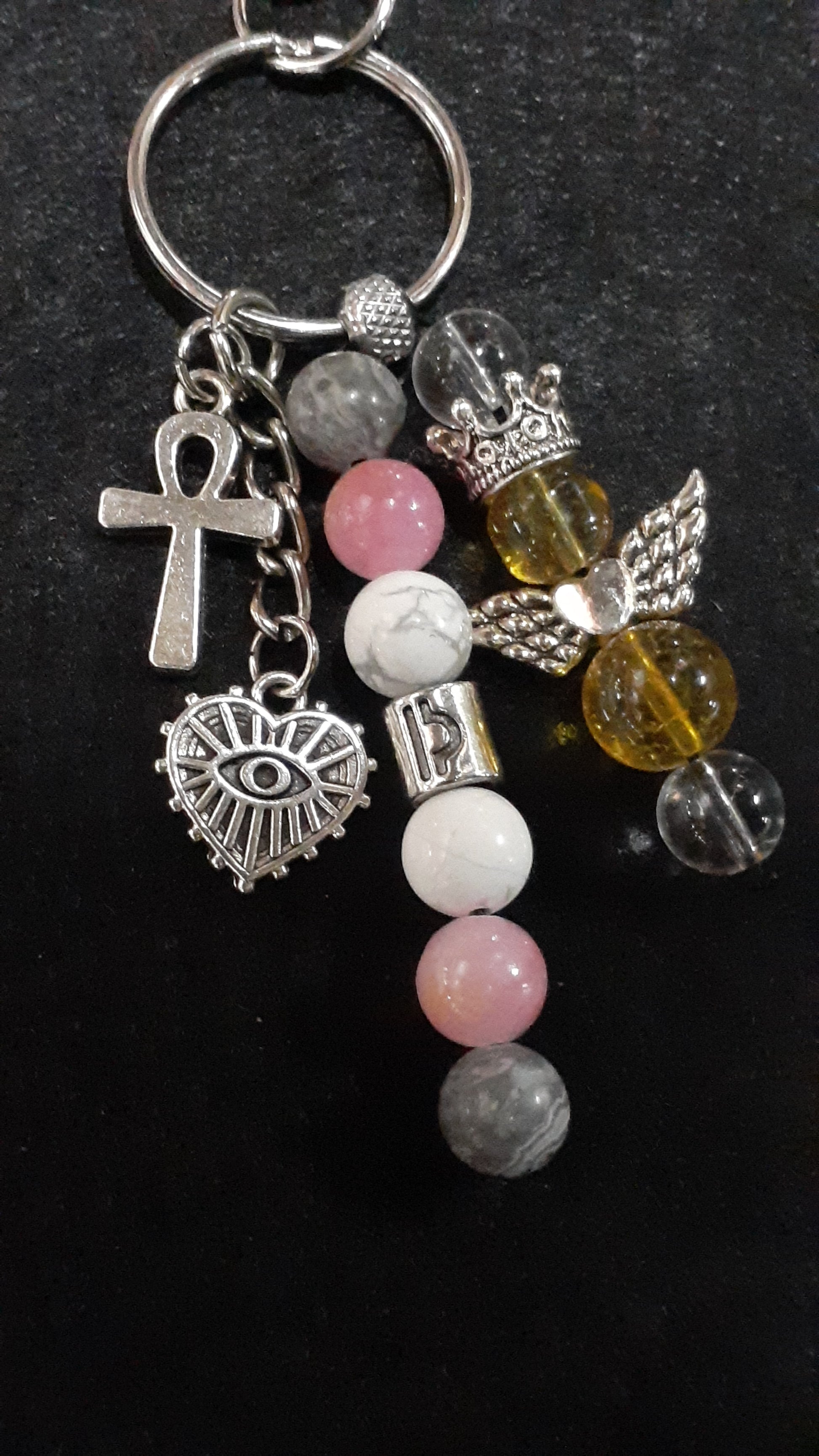Made with Natural Clear Quartz, Citrine, Map Jasper, Pink and Yellow Jade, And Howlite