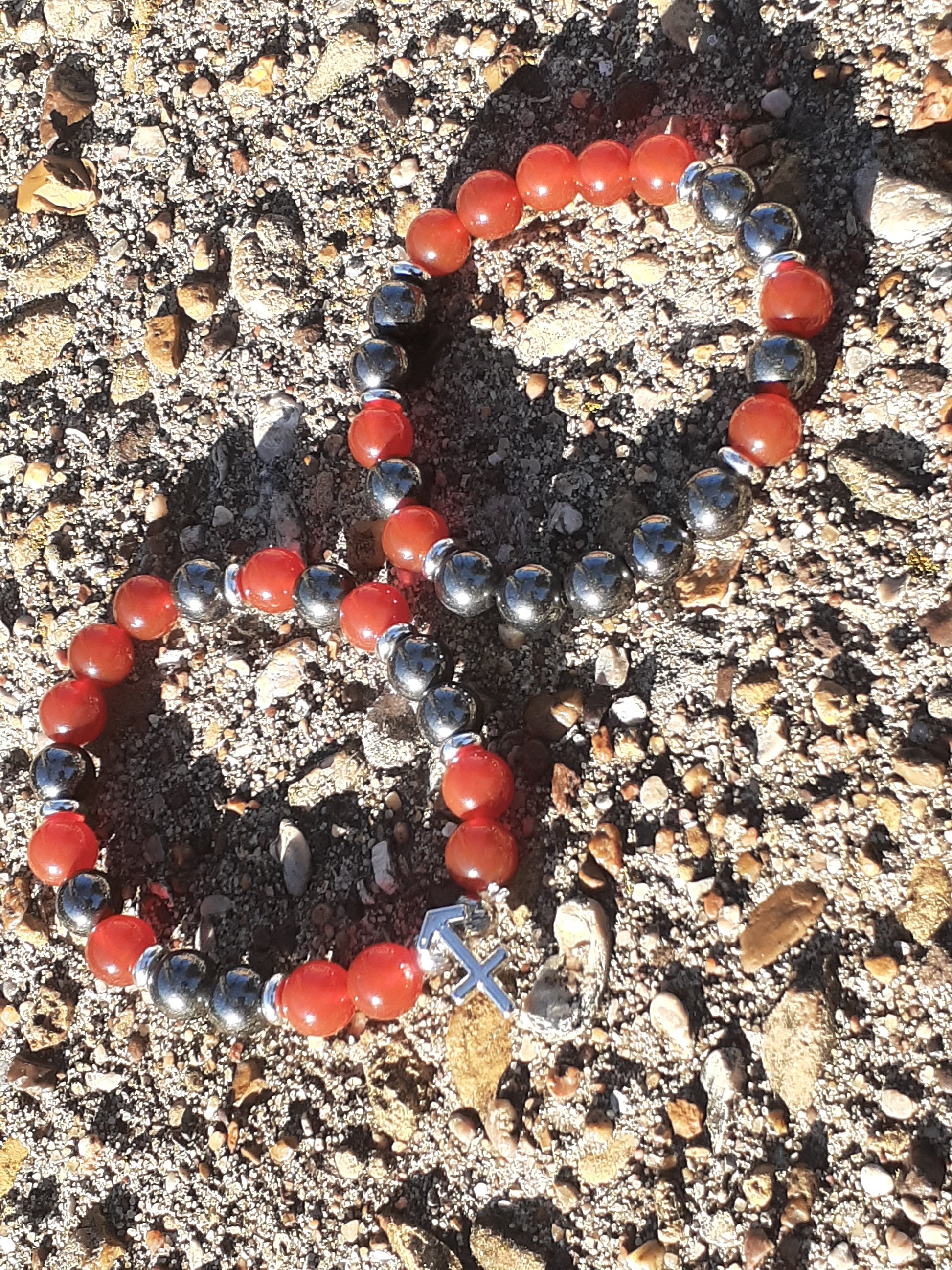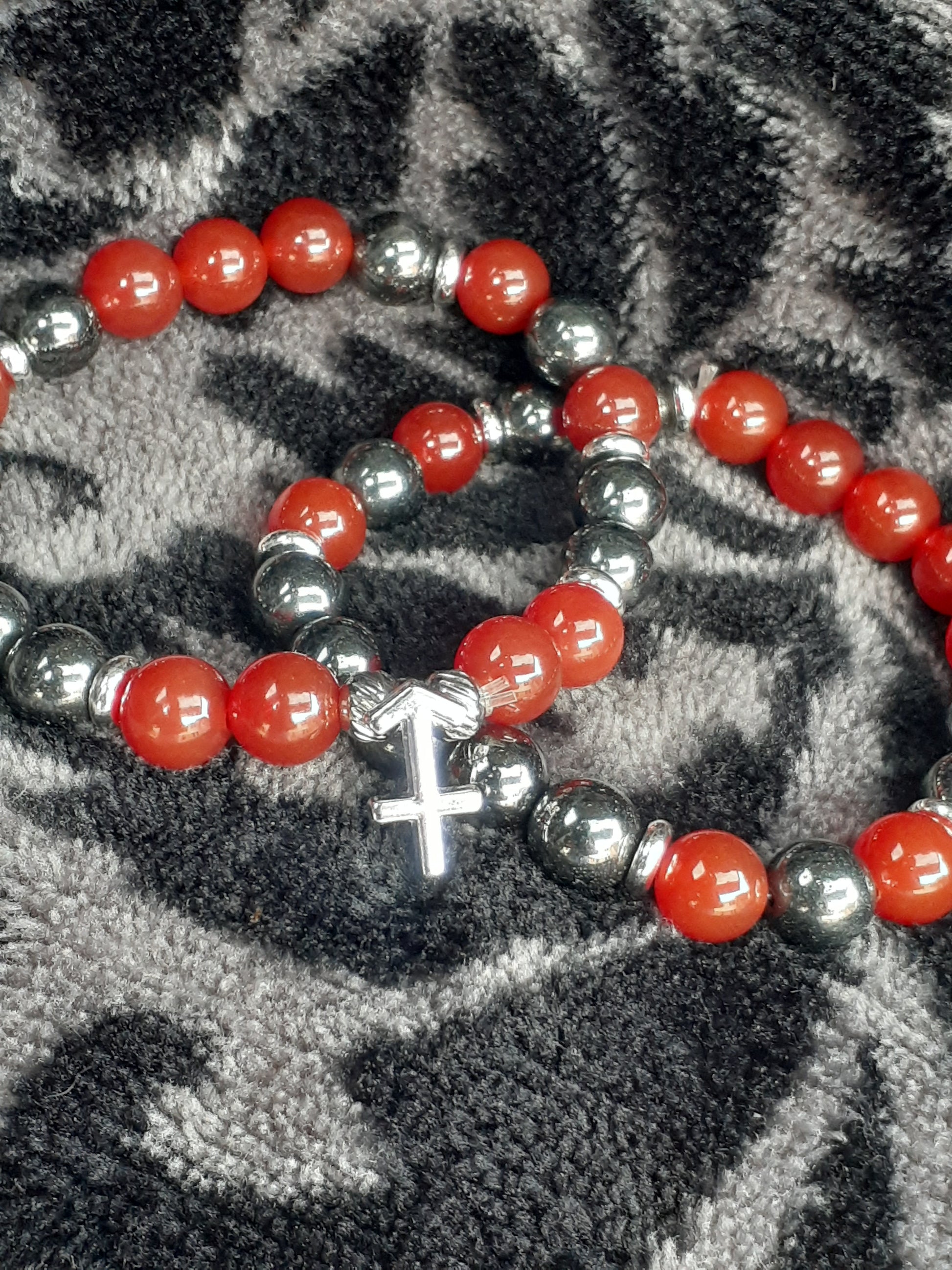 2 piece handmade stretch bracelet set! Made with Natural Red Agate and Hematite Stone Beads